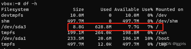 - mkfs.ext4 /dev/sda3 ## 将第3分区格式化为了ext4文件系统
